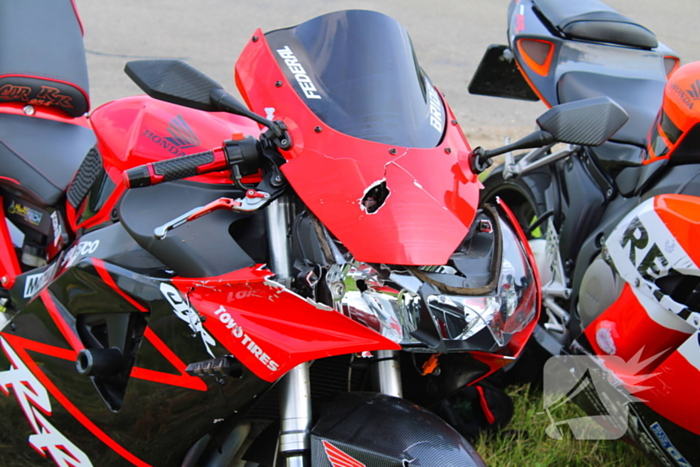 Bij de aanrijding waren twee motorrijders betrokken. De ambulancedienst controleerde de opzittenden, waarna de twee naar het ziekenhuis werden gebracht. De motoren raakten aanzienlijk beschadigd.