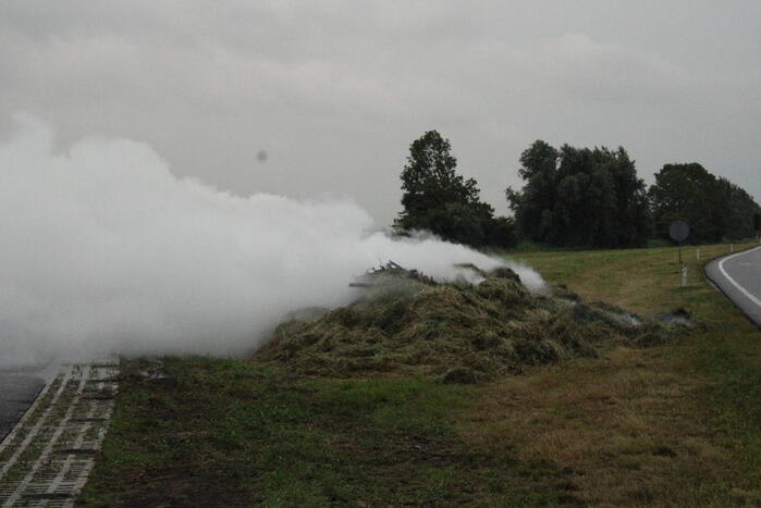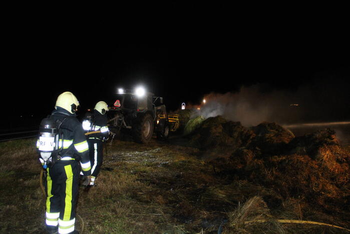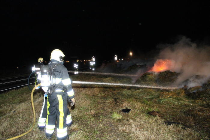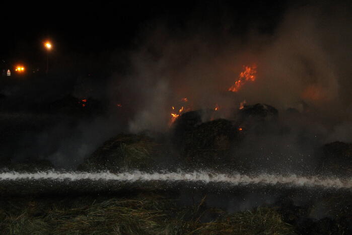 De brand veroorzaakte veel rook die over een parallelweg heen trok. De brandweer heeft de hooibalen uit elkaar gehaald en afgeblust. hoe de brand was ontstaan, is niet bekend.