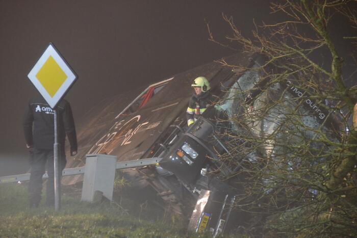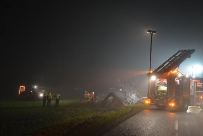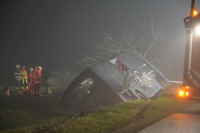 Door nog onbekende oorzaak is de chauffeur van de touringcar-bus de macht over het stuur verloren en half in de naastgelegen sloot tot stilstand gekomen tegen een boom. In de bus zaten op het moment van het ongeval vier personen in de touringcar. Twee daarvan werden overgebracht naar het ziekenhuis. Helaas mocht alle hulp voor de chauffeur niet baten en overleed hij aan zijn verwondingen.