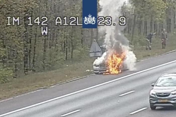 ARNHEM - Woensdagavond 29 april rond 17.40 uur is een auto in vlammen opgegaan op de vluchtstrook van de Rijksweg A12 bij 112 Arnhem.
