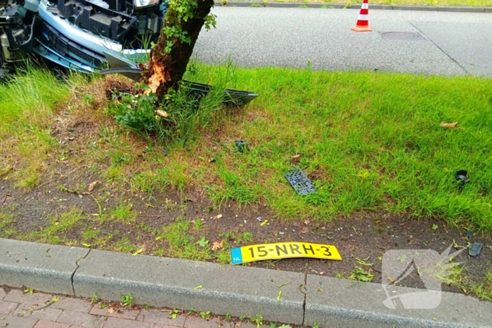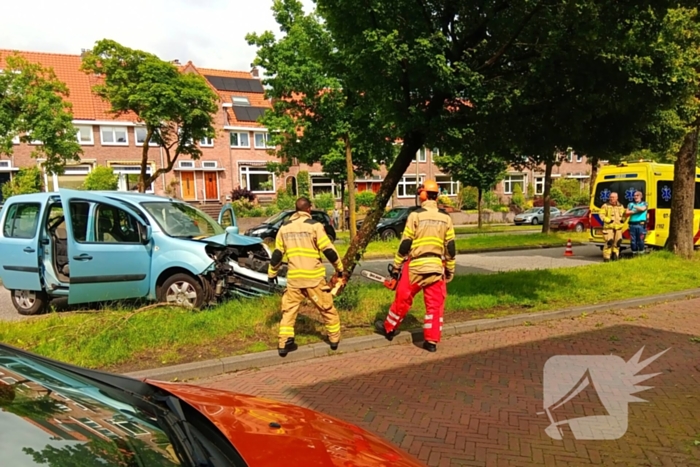 Een bestuurder was door een onbekende oorzaak met zijn voertuig tegen een boom gebotst. Hij werd onderzocht door het ambulancepersoneel, maar vervoer naar een ziekenhuis bleek niet nodig. De boom stond scheef door de klap. De brandweer heeft vervolgens de boom omgezaagd.