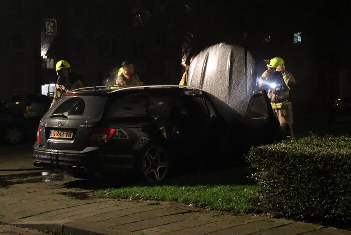 In een geparkeerde auto was brand ontstaan aan de voorzijde. De brandweer was snel ter plekke maar kon niet voorkomen dat er flinke schade is ontstaan. Onderzoek moet uitwijzen of er sprake is geweest van brandstichting.