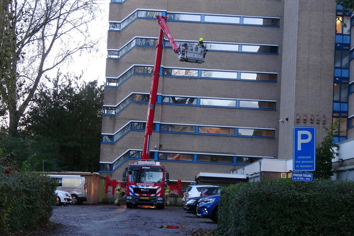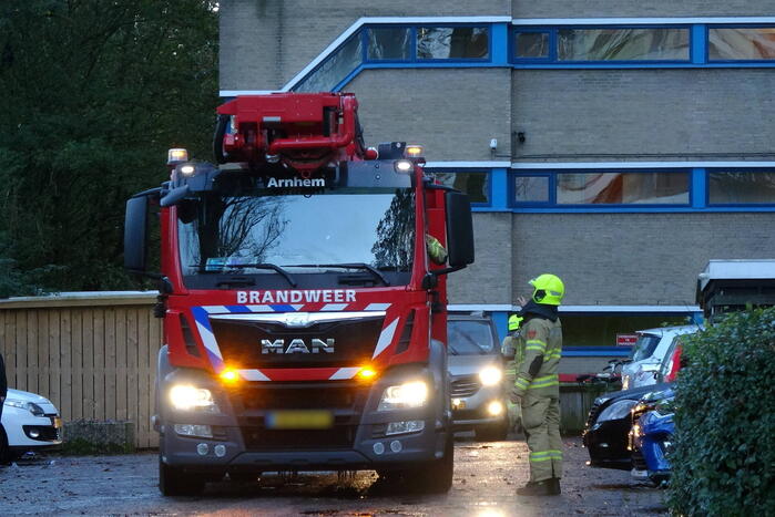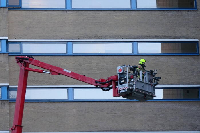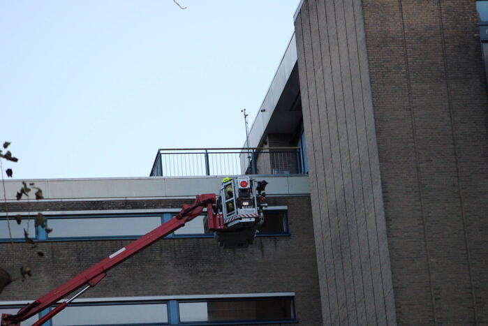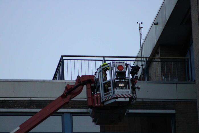 De brandweer werd met meerdere eenheden ingezet na een melding van een brand in een flatgebouw. Met behulp van een hoogwerker is het dak gecontroleerd op brand. Na een uitgebreide controle bleek van brand geen sprake.