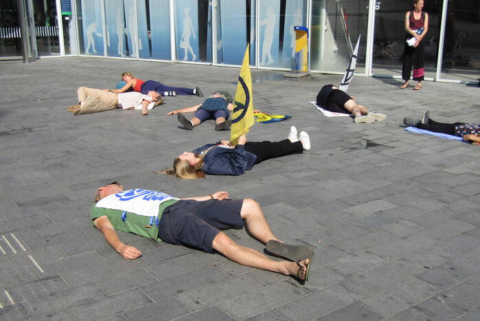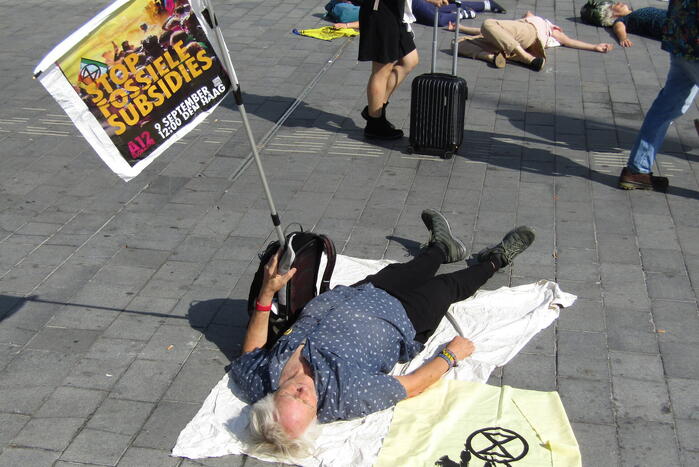 ARNHEM - Maandagmiddag 4 september omstreeks 12.50 uur was er een demonstratie van Extinction Rebellion aan de Oude Stationsstraat in 112 Arnhem.
