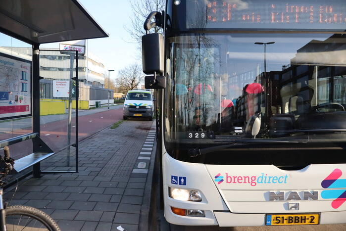 Een kind op een fiets is vermoedelijk in botsing gekomen met een lijnbus. De fietser is nagekeken door het ambulancepersoneel maar hoefde niet mee naar het ziekenhuis. Hoe het ongeval heeft kunnen gebeuren wordt onderzocht door de politie.