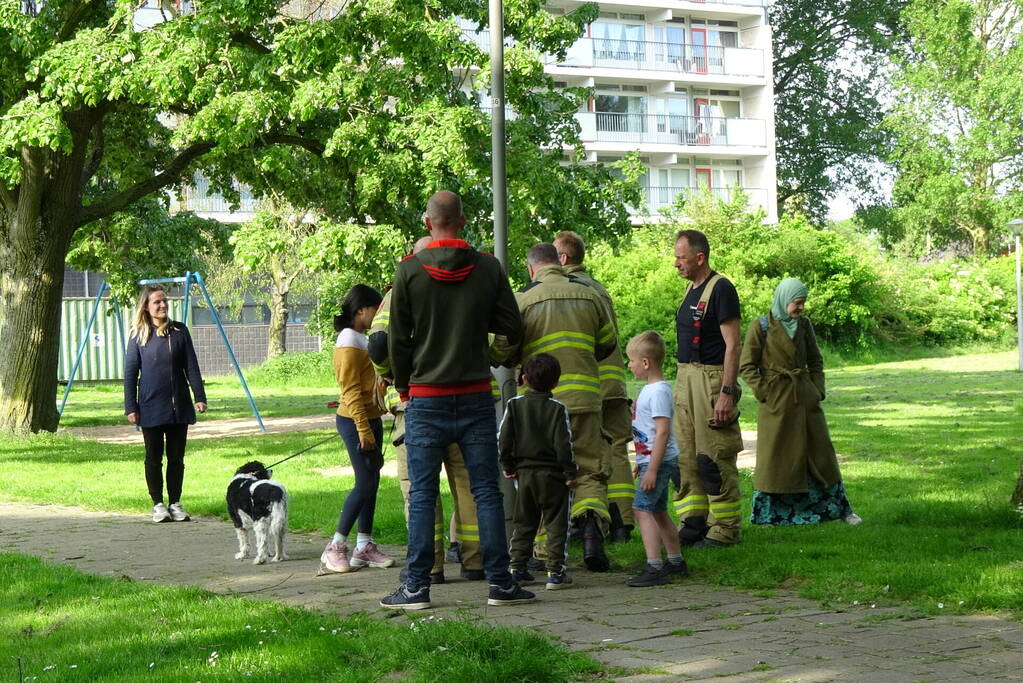 Nest met vogels vast in lantaarnpaal