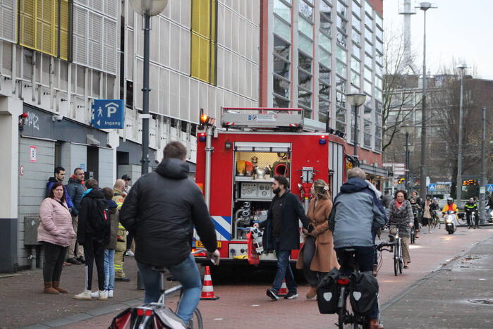 In de parkeergarage werd een auto aangetroffen waar rook vanaf kwam. Na een controle door de brandweer bleek van brand geen sprake. De garage was tijdelijk dicht voor bezoekers.