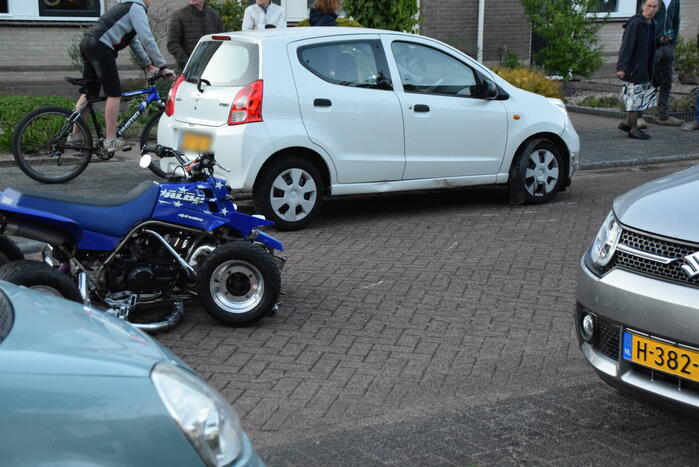 De quad en auto raakte beschadigd door het ongeval. De politie is een onderzoek gestart naar de oorzaak van het ongeval.