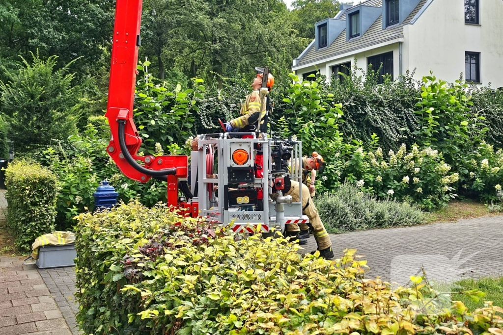 Brandweer verwijdert gevaarlijk hangende tak met hoogwerker