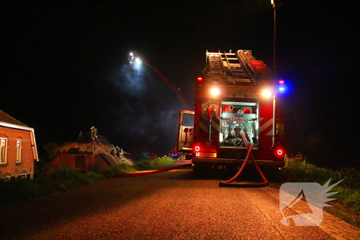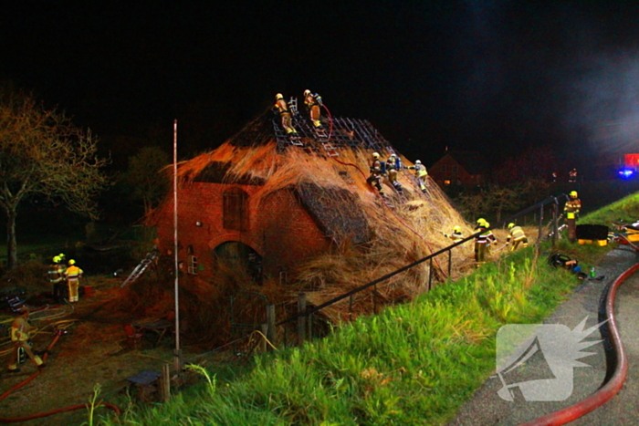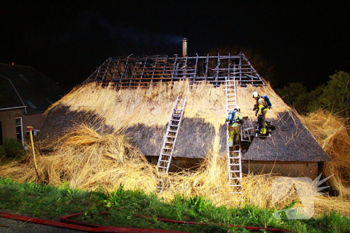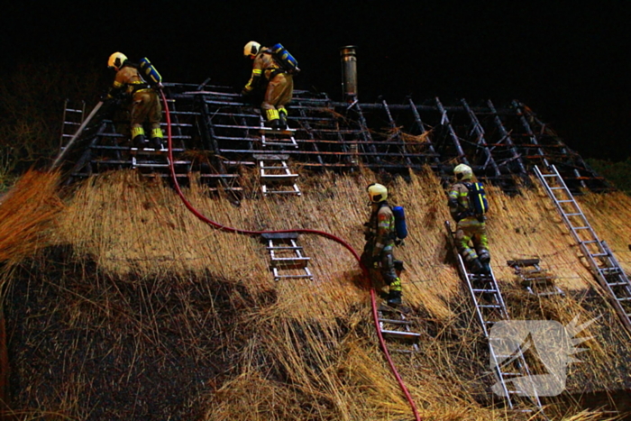De brand bevond zich in het rietgedekte dak van een woning. De brandweer schaalde op naar het sein 'grote brand' en zette onder andere een speciaal rietenkapteam in. Zij zijn het dak opgegaan om het riet uit elkaar te halen zodat de brand gedoofd kon worden.