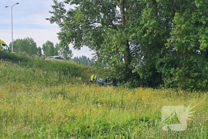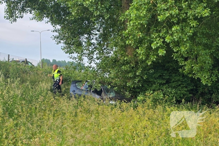 Een auto is daar van het talud afgereden, over de kop geslagen en achterstevoren tegen een boom terechtgekomen. De bestuurder heeft een blaas- en drugstest afgelegd. Daarna is de persoon in een ambulance nagekeken op eventuele verwondingen.