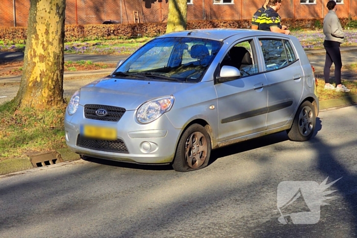 Een automobilist had door onbekende oorzaak een stoeprand geraakt en raakte hierbij gewond. Vermoedelijk werd de bestuurder onwel. De auto liep een lekke band op. De bestuurder werd per ambulance naar een ziekenhuis vervoerd.