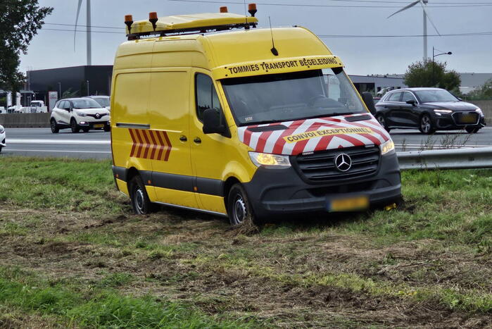 Door onbekende oorzaak is een bestuurder van een bestelbus naast de weg terechtgekomen. De bestuurder kwam met de schrik vrij en behandeling door het ambulancepersoneel bleek niet nodig. De schade aan de bus bleef beperkt.