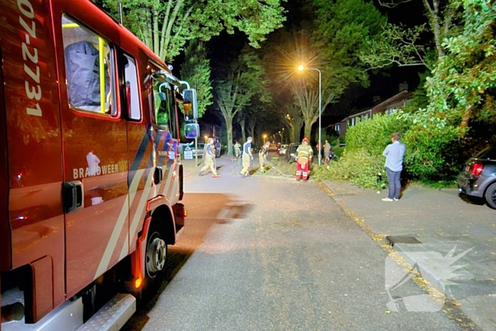 Een boom was omgevallen precies tussen twee geparkeerde auto's in. Een van de voertuigen liep lichte schade op. De brandweer heeft de boom in stukken gezaagd.