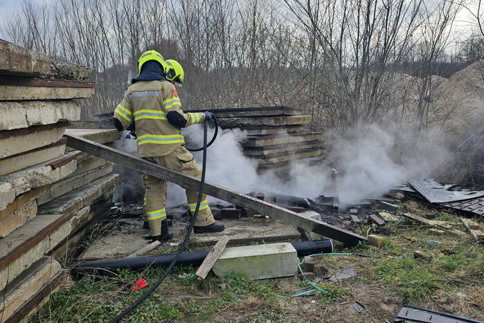 In een stapel met bouwafval op een bouwterrein was brand gesticht. Omdat de locatie slecht te bereiken was voor de brandweer moest 90 meter brandslang uitgerold worden. Eenmaal bij de brand was deze snel onder controle.