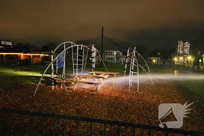 De brand bevond zich bij een speeltoestel in een speeltuin. Brandweerlieden hebben de brand geblust.