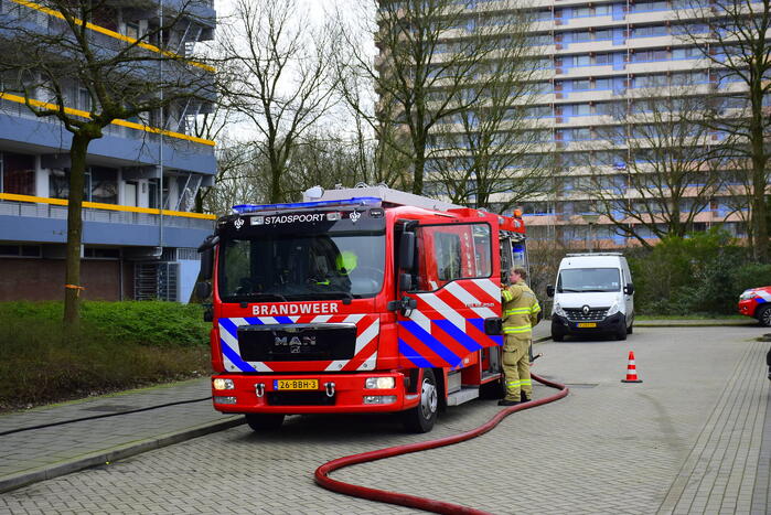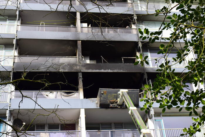 EDE - Donderdagmiddag 16 maart om 14.10 uur is de brandweer nog steeds aan het nablussen in de appartementen aan de Van der Hagenstraat in 112 Ede.