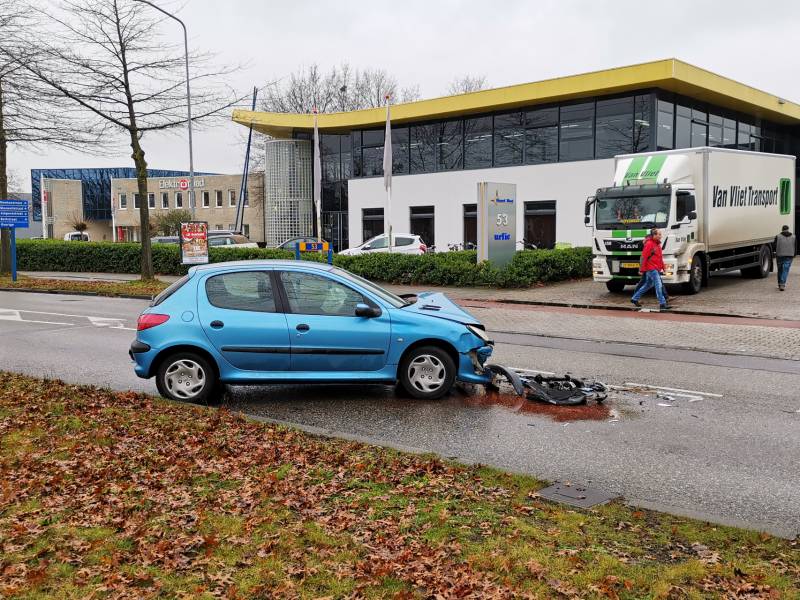 Een personenauto is in aanrijding gekomen met een vrachtwagen. Bij de aanrijding is niemand gewond geraakt, wel is de bestuurder van de personenauto gecontroleerd in een ambulance.