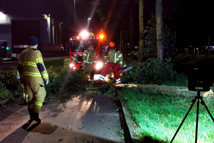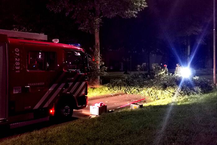 De brandweermannen hebben de tak uit de boom gezaagd en in stukken gezaagd. De gemeente zal de restanten verder opruimen.
