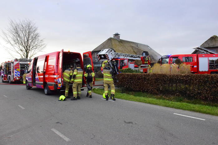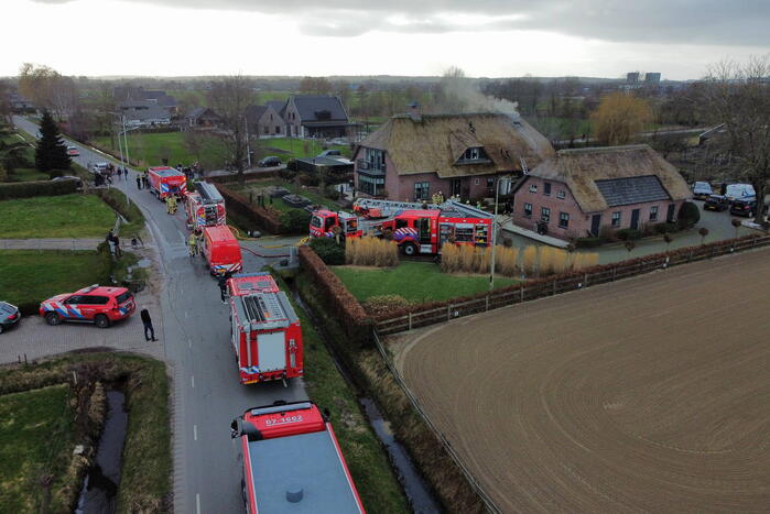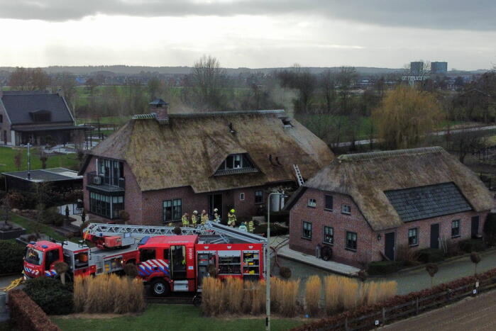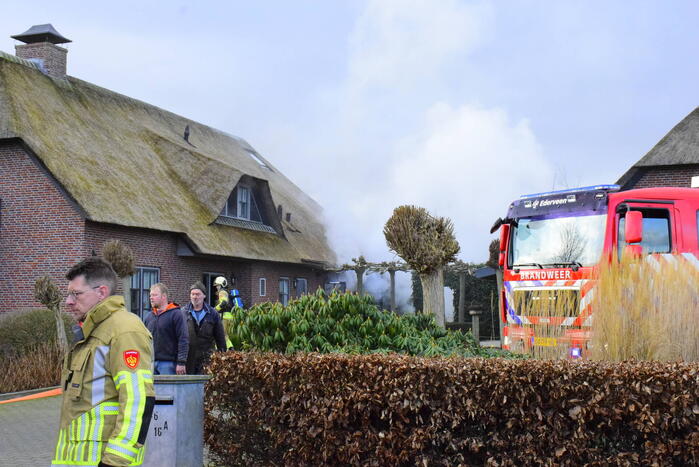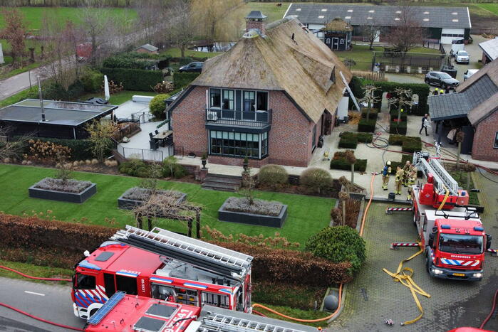 In een vrijstaande villa met een rietendak was een hevige brand uitgebroken. Bij de brand kwam veel rook vrij. Vanwege het rietendak schaalde de brandweer al snel op naar het sein grote brand. Met meerdere brandweerploegen werd geprobeerd de woning te sparen. Volgens de brandweer ontstond de brand in de woonkamer van de woning en is een deel van het rietendak betrokken geweest bij de brand.