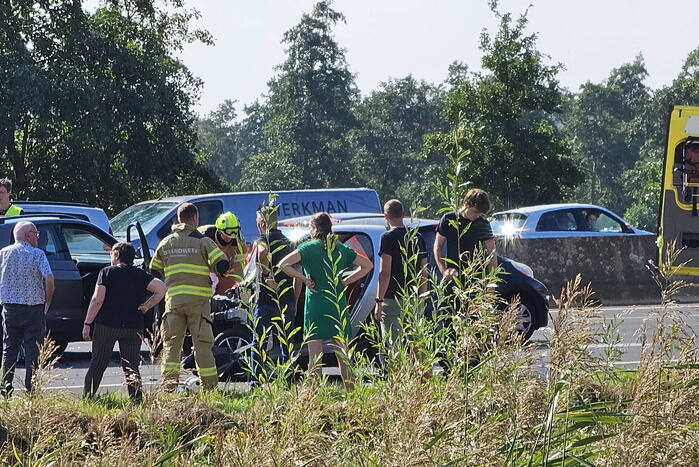 Op de snelweg zijn meerdere voertuigen in botsing gekomen. De brandweer werd opgeroepen om de inzittenden uit de auto's te halen en de voertuigen veilig te stellen. Twee personen zijn behandeld in een ambulance. Na behandeling zijn twee slachtoffers, waarvan één met spoed, vervoerd naar een ziekenhuis.