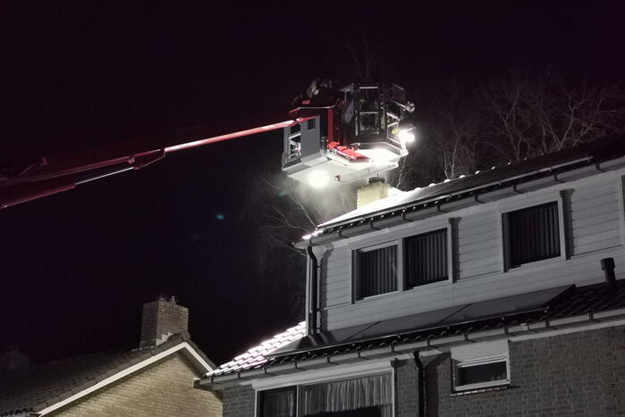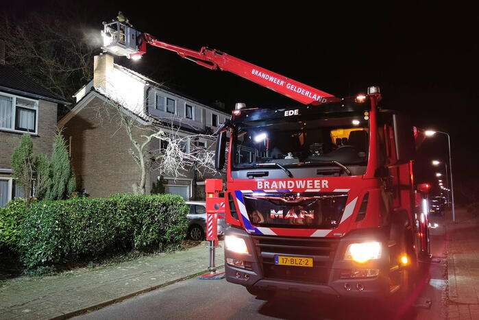 In de schoorsteen van de woning was brand ontstaan. Met behulp van een hoogwerker is de schoorsteen geveegd. Bij de brand kwam de nodige rook vrij.