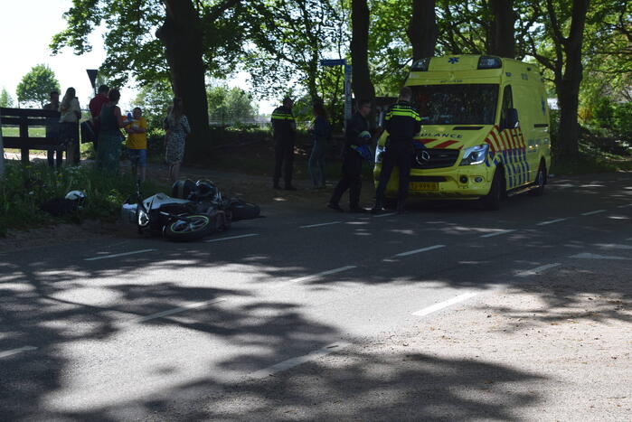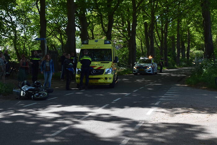 Een bestuurder en bijrijder van een motor kwamen ten val nadat ze moesten remmen voor een overstekende fietser. De bijrijder is gecontroleerd in een ambulance maar vervoer bleek niet nodig. De motor raakte beschadigd door de val.