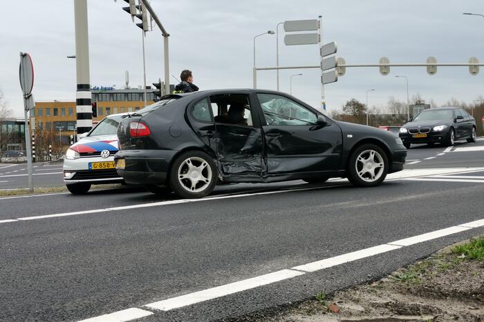 Twee auto's zijn met elkaar in botsing gekomen op de kruising, waarbij de een de ander in de flank raakte. Hoe het ongeval precies heeft kunnen gebeuren, is nog niet bekend. Een automobiliste werd gecontroleerd door het ambulancepersoneel en vervolgens per ambulance overgebracht naar het ziekenhuis.