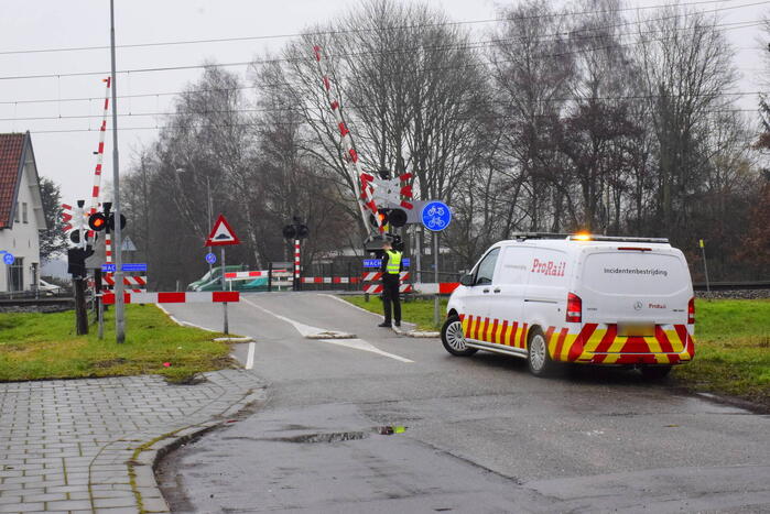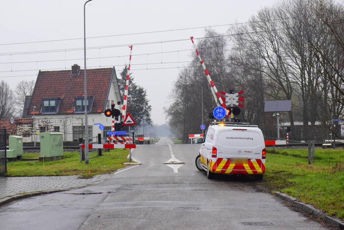 De vrachtwagen heeft de spoorboom geraakt hierdoor is de spoorboom defect geraakt. Monteurs van ProRail zijn aanwezig zodat de mensen veilig naar de overkant kunnen. Monteurs zullen herstelwerkzaamheden gaan uitvoeren.