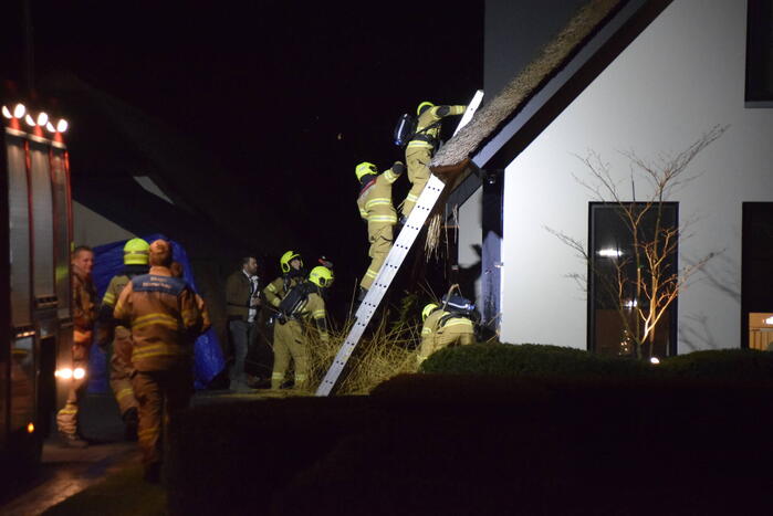Bij aankomst van de brandweer was het vuur gedoofd. De brandweer plukt een deel van het riet weg om zeker te zijn dat de brand helemaal uit is. Ook wordt het een en ander nat gemaakt.