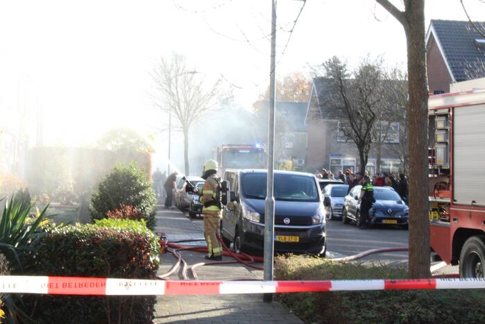 Toen de brandweer arriveerde was al veel rook waar te nemen. De brand bevindt zich in het dak. Al snel werd opgeschaald naar het sein middel brand. De straat is tijdelijk afgesloten.