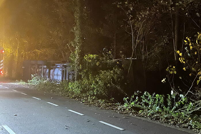 Een vrachtwagen met oplegger was van de weg geraakt en is hierbij op zijn zijkant terechtgekomen. De bestuurder van de vrachtwagen is hierbij gewond geraakt. De traumahelikopter werd opgeroepen maar bleek niet nodig. Hey slachtoffer is overgebracht naar het ziekenhuis ter verdere behandeling. De brandweer werd ingezet ter assistentie van de ambulancedienst.