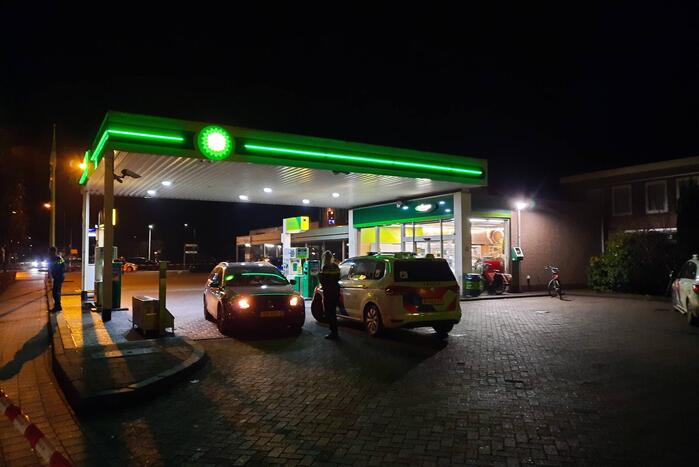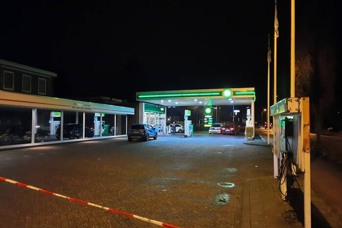 Bij aankomst van de politie was de verdachte niet meer aanwezig. De politie zocht een man, lang en slang postuur, hij zou een zwarte muts dragen en een grijs/blauwe hoodie met een zwart mondkapje. De politie heeft het terrein van het tankstation afgesloten en doet onderzoek.
