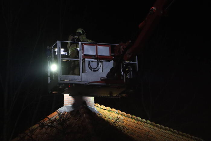 In de schoorsteen van de woning was door nog onbekende oorzaak brand ontstaan. Met behulp van een hoogwerker is de schoorsteen geveegd. De brandweer heeft de smeulende delen naar buiten gebracht en afgeblust.