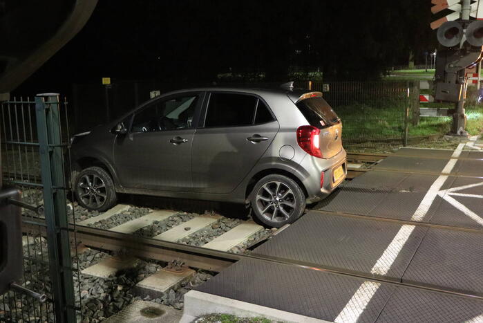 Een automobilist was door nog onbekende reden een stukje het spoor op gereden. ProRail incidentenbestrijding werd opgeroepen maar hun zijn uiteindelijk niet ter plekke geweest. De bestuurder had de locatie verlaten. Het spoor is gecontroleerd op eventuele beschadigingen.