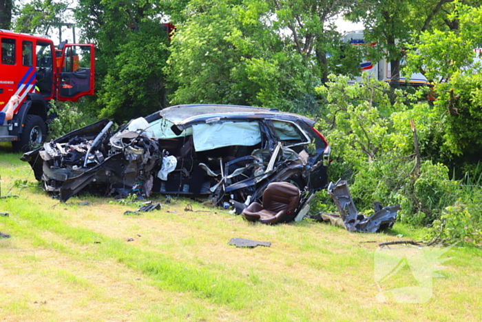Een auto is met volle vaart door de voortuin van een woning gereden, heeft onderweg een boom geraakt en is in een weiland tot stilstand gekomen. Vermoedelijk heeft de auto ook een huis aangereden. De brandweer heeft zichtschermen geplaatst en een traumahelikopter is geland om medische bijstand te verlenen.