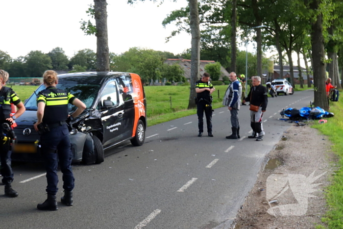 Een motorrijder kwam daar in botsing met een bestelbus. De motorrijder raakte zwaargewond en is door het medisch personeel behandeld. Ter ondersteuning van het ambulancepersoneel werd een traumateam ingezet. Zij zijn per helikopter ingevlogen en nabij het incident geland. Brandweerlieden hebben hand- en spandiensten verleend. De bestelbus raakte fors beschadigd.