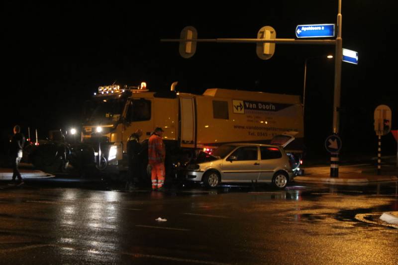 Een vrachtwagen kwam daar in botsing met een personenauto. Bij de aanrijding raakte niemand gewond. Wel ondervonden andere weggebruikers hinder van het ongeval. Wat de oorzaak van de botsing is, is nog onduidelijk.