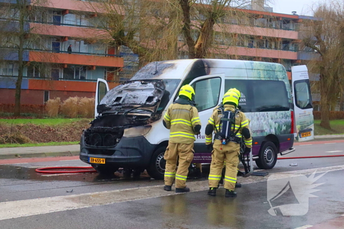 De brandweer is aanwezig om de brand in de personenbus te blussen. De brand is volgens de chauffeur ontstaan tijden het rijden. Een bergingsbedrijf zal de uitgebrande taxi bus gaan afslepen. Ook werd de ambulancedienst ingezet voor het verlenen van medische hulp.