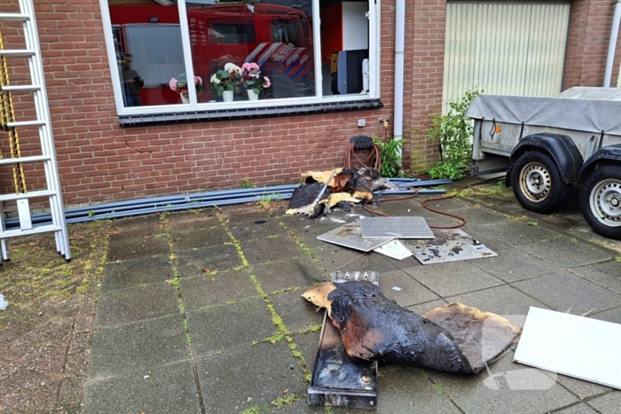Een lamp bleek de oorzaak van de brand. Hierdoor is er ook isolatie gesmolten.