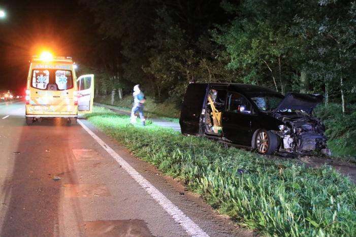 Een bestelbus raakte van de weg en kwam via een sloot in de berm tot stilstand. Na controle van het ambulancepersoneel hoefde het slachtoffer niet mee naar het ziekenhuis.