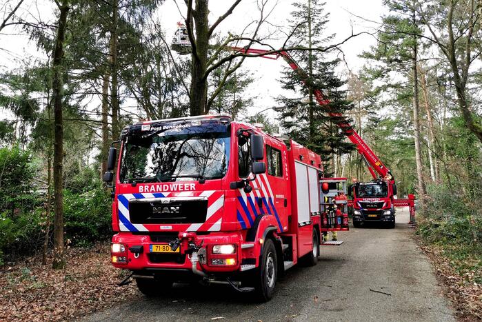 De brandweer is gekomen om een veilig situatie te creëren en brandweerlieden de boom vanaf boven klein gezaagd. Dit zorgde ervoor dat de boom niet weer op de woning kon vallen. De weg was tijdens de inzet van de brandweer even afgesloten.