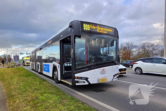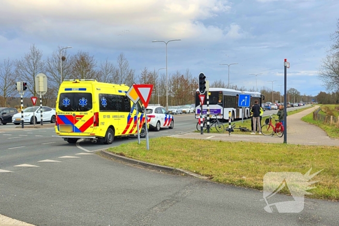 Een fietser was hier aangereden door een lijnbus. De fietser is door het ambulancepersoneel nagekeken maar vervoer naar het ziekenhuis bleek niet noodzakelijk.