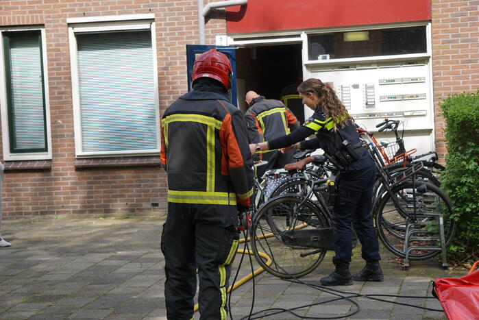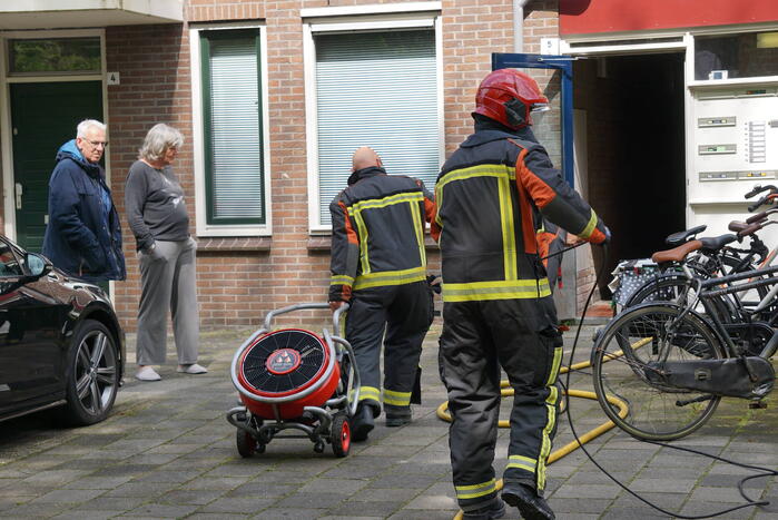 In een flatwoning is de brand ontstaan. Voor zover bekend is niemand gewond geraakt. De brandweer heeft de ruimte binnen geventileerd om zo de rook te verdrijven.