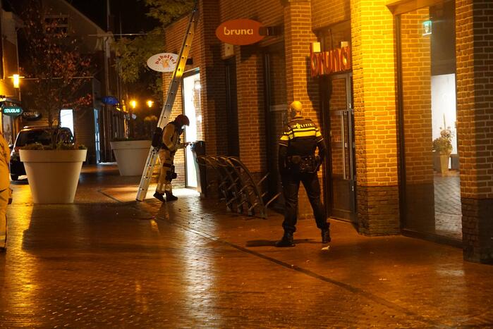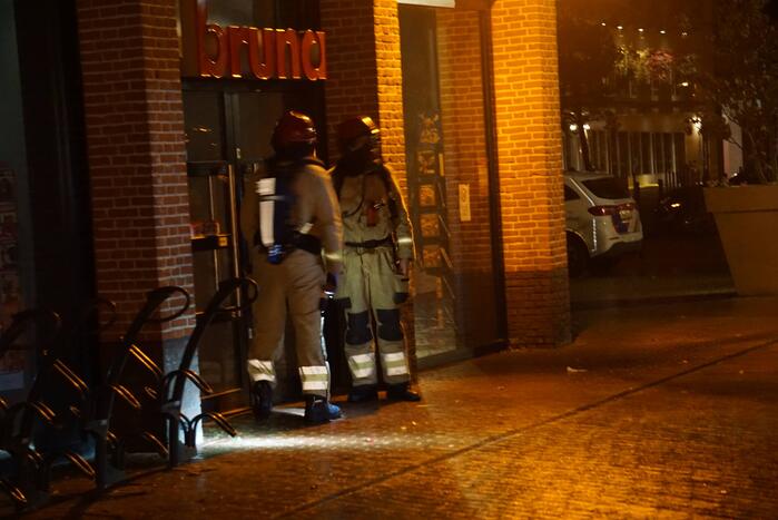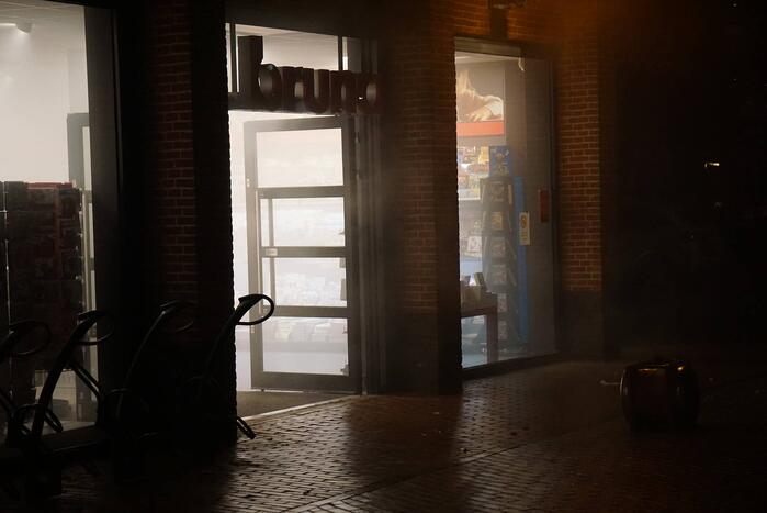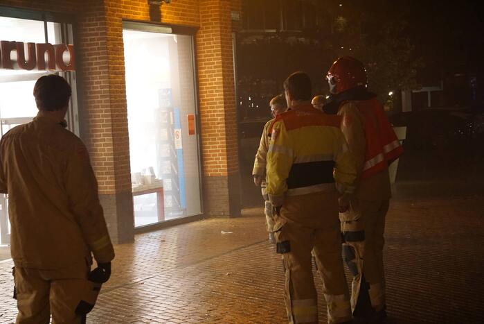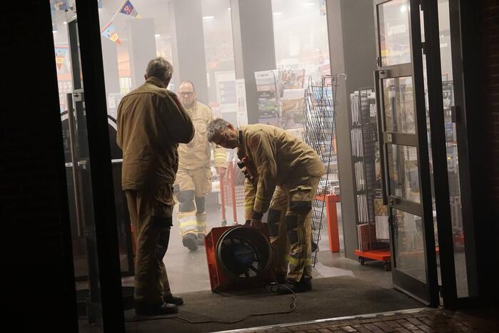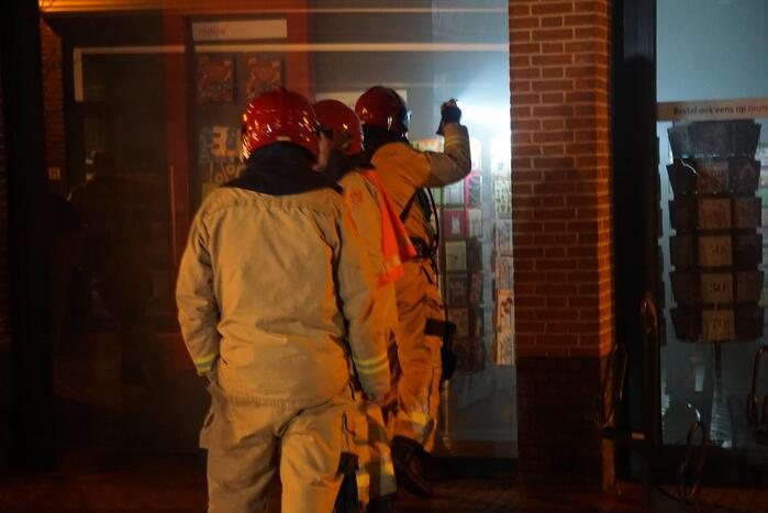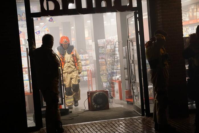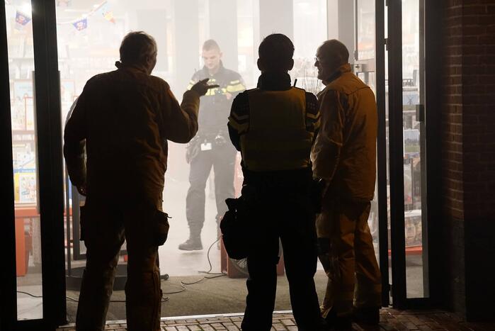 Normaal gaat een mistgenerator af als een inbraak plaatsvind, in dit geval bleek een storing de oorzaak te zijn geweest. De brandweermannen hebben de winkel geventileerd.