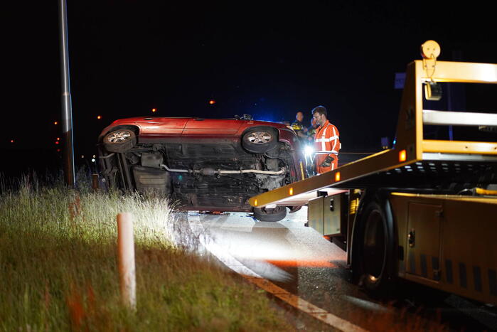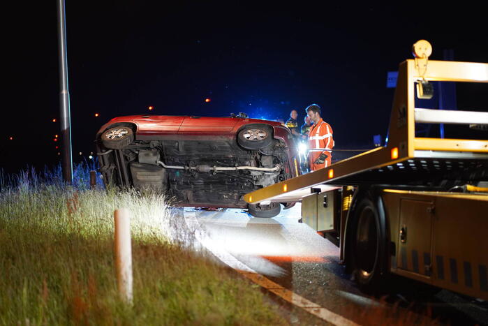 Een bestuurder kwam vanaf de richting van Veendam en raakte op de afrit de macht over het stuur kwijt en kwam met zijn auto op zijn kant terecht. De afslag is vanwege het ongeluk tijdelijk afgesloten. De bestuurder raakte slechts lichtgewond en hoeft niet mee naar het ziekenhuis. Door de politie wordt onderzocht hoe het ongeval heeft kunnen gebeuren.