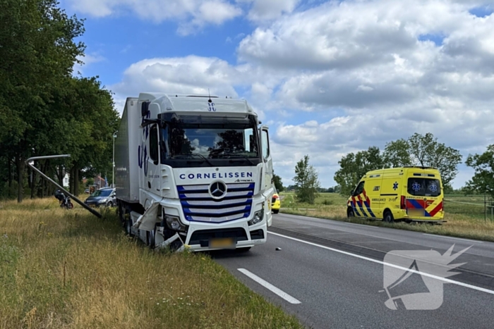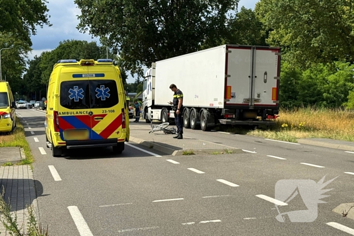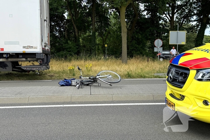 Een fietser is zeer ernstig gewond geraakt bij een botsing met een vrachtauto. Meerdere hulpdiensten, waaronder een traumateam dat met de traumahelikopter werd ingevlogen, zijn aanwezig om het slachtoffer de nodige zorg te bieden.