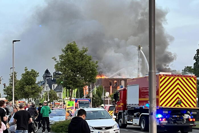 HERZOGENRATH - Zondagavond 21 mei was een grote brand ontstaan in een gebouw aan de Roermonder Straße - L232 in 112 Herzogenrath.