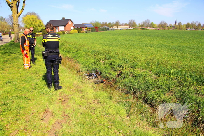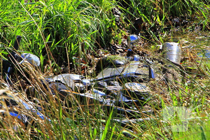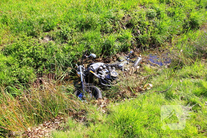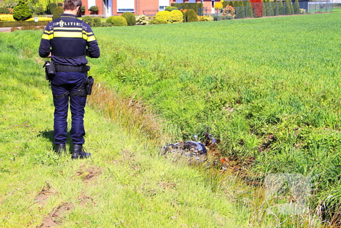 Een motorrijder maakte een forse schuiver van ongeveer dertig meter en belandde in een sloot. Hij werd gecontroleerd in de ambulance.