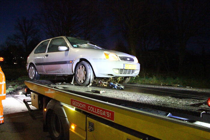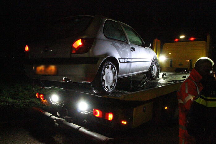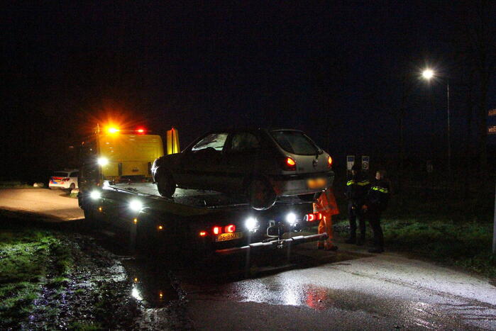 Een bergingsbedrijf heeft de auto uit de sloot gehaald en geborgen.